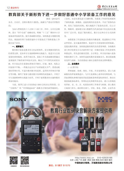 隨著《展會特刊》影響力的進一步提升,自2017年第72屆中國教育裝備展示會起,《展會特刊》將全新更名為《會刊》,在原有內容的基礎上進一步升級,旨在打造成為展會期間及知名度和影響力并重的重要刊物。